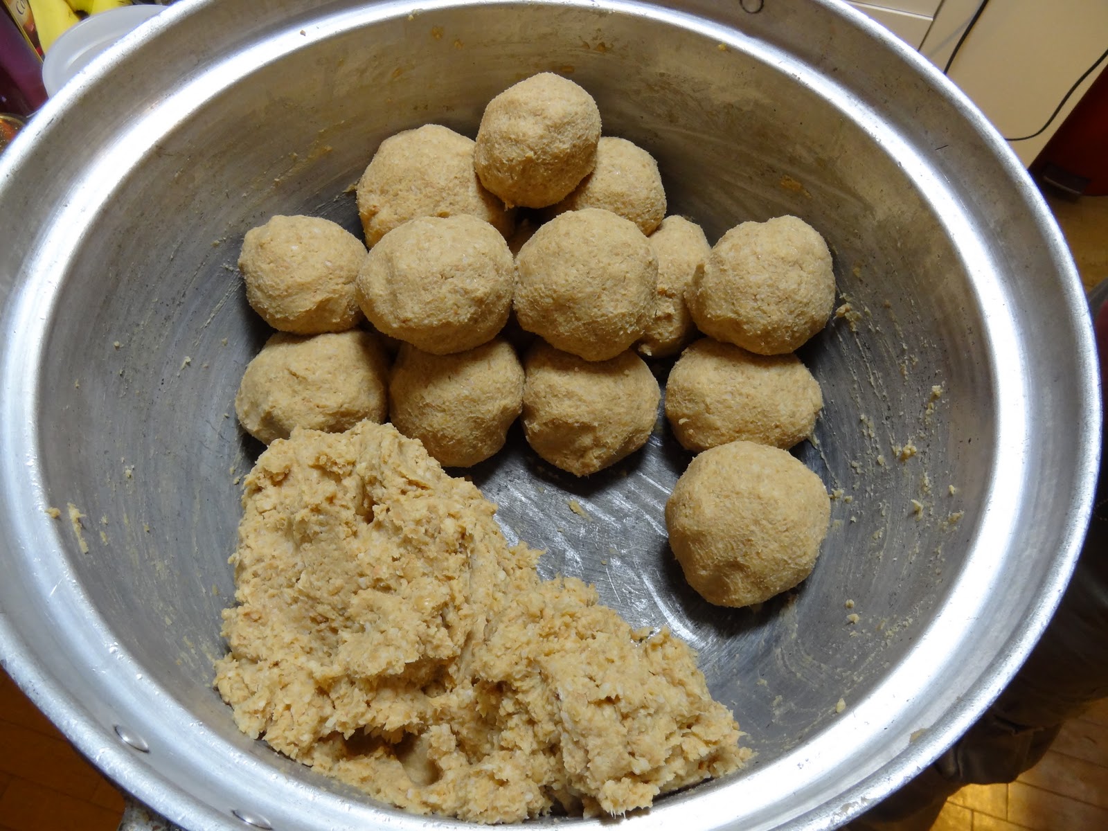 Colocar as bolas de miso e amassar tudo evitando deixar espaço com ar dentro.