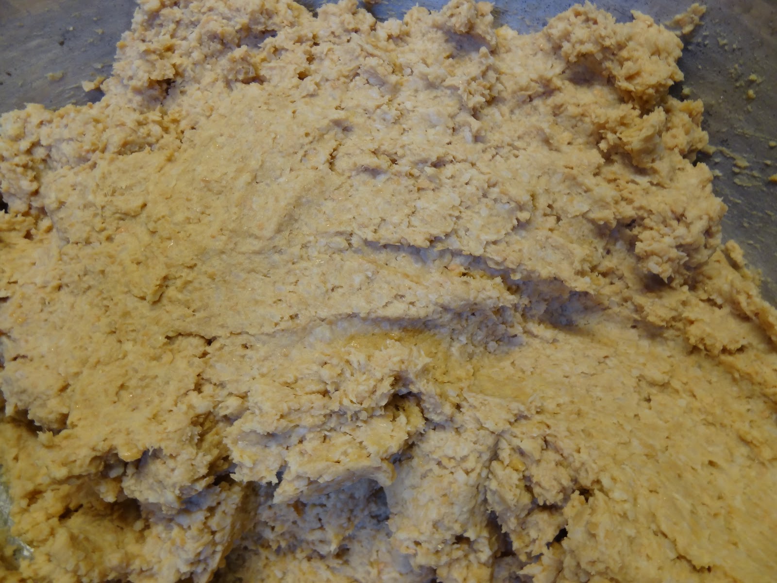 Misturar a soja com o kouji e adicionar os 200 ml do liquido da soja